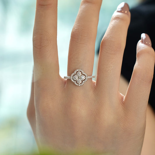 Angela Jewelry]Hollow Design Four-Leaf Clover Flower Shape Ring