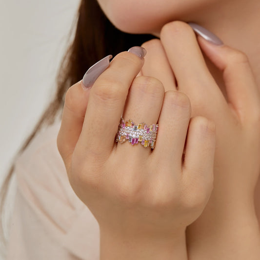 Angela Jewelry]Ornate Colorful Radiant Cut Daily Ring